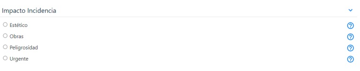- Se deberá elegir el tipo de impacto de la incidencia, nuevamente se cuenta con un icono de ayuda para guiar al usuario: