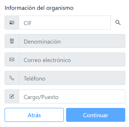 En caso de que se trate de una cuenta de Organismo Oficial o Empresa se deberán además proporcionar los siguientes datos: