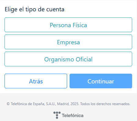 - Elección tipo de usuario.