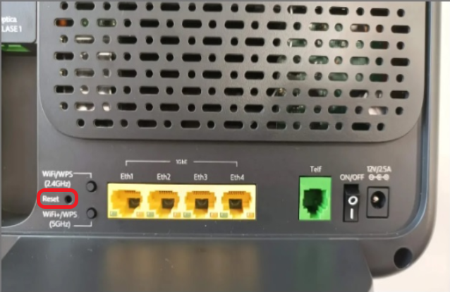 - Si el reinicio no soluciona el problema, realiza un restablecimiento de fábrica. Para ello, presiona con un objeto delgado el botón interno denominado 'Reset' durante 15 a 20 segundos. (Ten en cuenta que esta acción borrará toda configuración personalizada que hayas realizado previamente, como el cambio de la clave Wi-Fi, apertura de puertos, modificación del nombre de las redes, entre otros.)