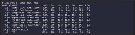 Esta ruta , por ejemplo, es mucho más correcta, no tiene dos nodos seguidos sin dar respuesta ninguna. Y el host al que llega (hetzner) es el mismo que el del servidor que me da problemas.