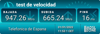 Escribo por aquí a ver si consigo una solución al problema que tengo desde hace 1 semana. Pues bien, el 17 me han instalado la fibra (fusión inicia infinito), hasta ahí todo perfecto ya que alcanzaba los 945-950mb en ambos sentidos. A la semana aprox. he visto que la velocidad de subida se quedaba siempre en 660-670mb (como si estuviera limitada).