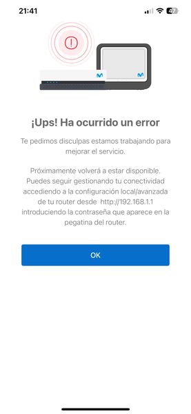 1º. Un error/problema con la asociación a los servidores de Movistar. Ten en cuenta que la app no habla con el Router realmente, habla con los servidores de Movistar, estos hacen de intermediario. Para que esto sea posible el Router cuando se resetea hace como sabes la carga inicial de los datos del usuario, y entre ellos los datos de "acceso" si lo quieres llamar así a los servidores de gestión de Movistar. Si por un casual dicha sincronización se pierde, es necesario resetear el Router para que vuelva a "emparejarse" con los servidores de Movistar.