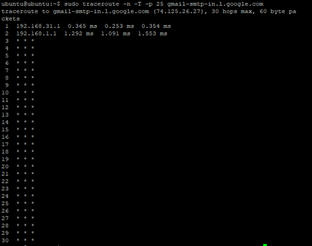 Pues como te digo algo raro tendrían, no te bloqueaban el puerto 25 sino directamente alcanzar el MTA de Google, otros MTA podías alcanzar sin problemas, y usan igualmente el puerto 25 de destino. En cualquier conexión de fibra que tengo acceso desde aquí tampoco fue necesario avisar nada, además el tráfico en el tracert se cortaba en el Router mismo, no en su red, con lo que posiblemente te habrán deshabilitado la suite integrada del HGU de McFee para la conexión segura.