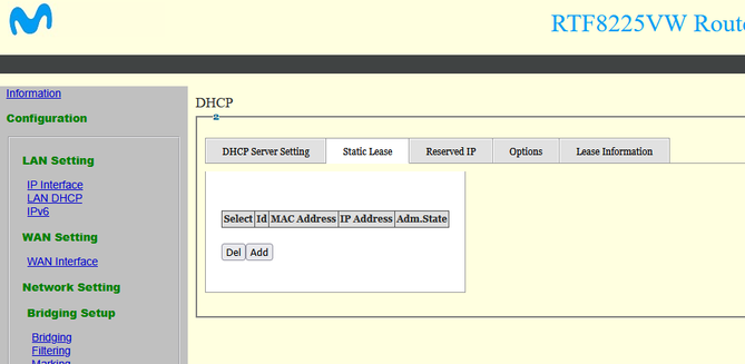 Como al clicar en el número 2, antes de seleccionar Static Lease, hay muchísimas opciones diferentes, no sé si he de tocar algo más de ahí.