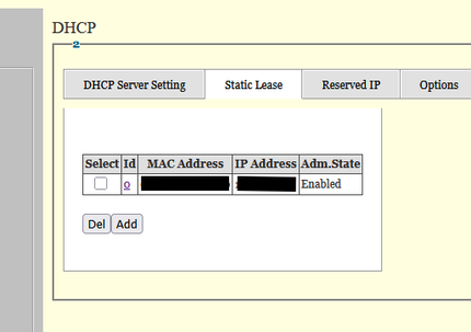 Cuando lo tengas localizado, únicamente tienes que ir a static lease y añadir la que quieras. Guardas y listo. Es posible, no seguro, que tenga que reiniciar. Ten en cuenta que dependiendo del modelo de Router, algunos te obligan que la IP seleccionada esté dentro del mismo Pool que gestionan, o al contrario, obligatoriamente fuera del pool.