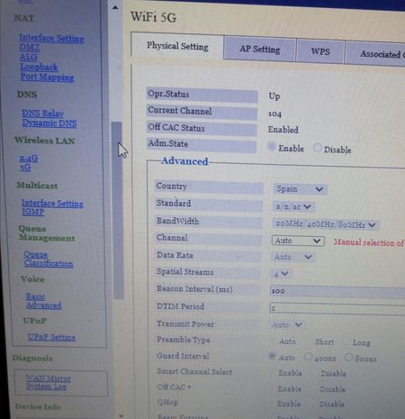 En ese mismo apartado de la imagen que nos envías, si accedes a la pestaña de AP Setting deberías ver la lista de los nombres con los que se emite la red de 5Ghz, hay que pulsar sobre el número de la izquierda que identifica a la red con el mismo nombre que la de 2´4 Ghz y seleccionar: Disable y pulsar "Apply/Save".