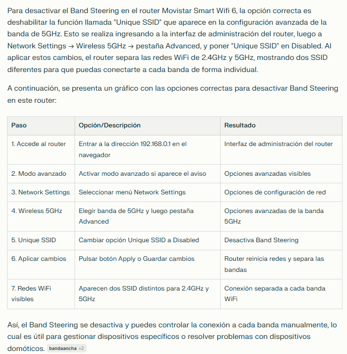 Uno de los procedimientos que lo permiten, es deshabilitando "Band Steering", lo que así permite separar las bandas de conexión de 2,4 GHz y 5 GHz. A partir de entonces, ya será posible enlazar o conectar con el Router Movistar Smart Wifi 6 aquellos dispositivos que solo pueden conectarse con la banda 2,4 GHz