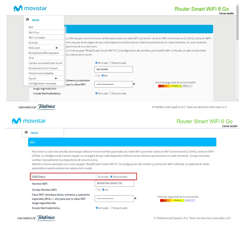 Según deseemos tener o no una sola red inalámbrica emitiendo en doble banda, Activamos/Desactivamos SSID Único. Para que los cambios se guarden, pulsamos el botón inferior de Aplicar Cambios.