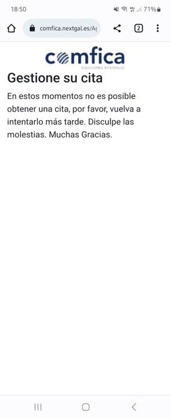 Avise a movistar que estaba sin fibra me dicen que tiene que venir servicio técnico me envían un mensaje para concertar cita y cada vez que le doy a concertar cita me sale que no es posible
