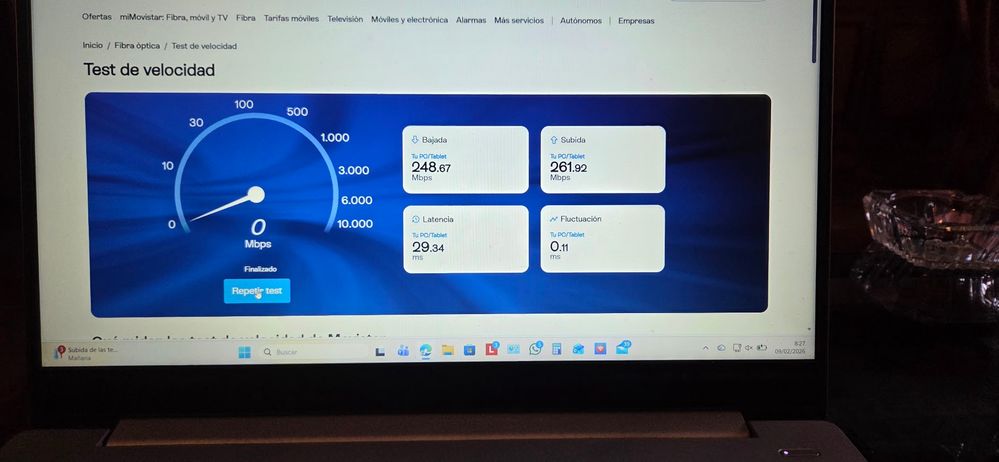 velocidad muy baja en subida y bajada de fibra 1 Giga en primera residencia