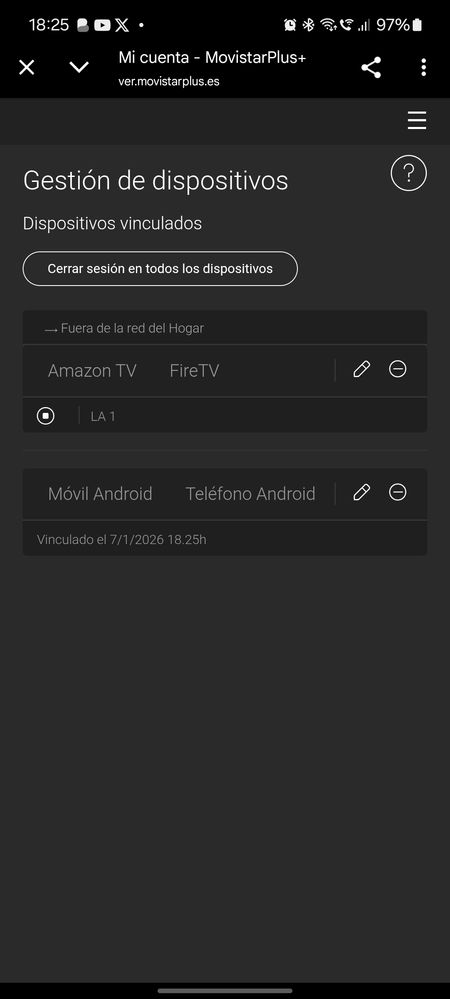 Ahora que tengo Movistar Fibra (tardaron, pero ya lo tengo) va mal y intenté cerrar sesión y volver a iniciar sesión en unos dispositivos y vuelve a dar cortes más frecuentes. Me di cuenta que en la aplicación me dice que todos mis dispositivos iniciado sesión a mi cuenta de movistar+ están fuera del hogar, estando conectado los mismo routers, pero con el router propio de Movistar. Pienso que es por la nueva Red del router movistar.