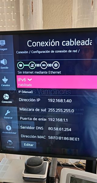 Deckard01Yo probé el VDSL23-05-2024Cortes continuos conexión TV por cable Ethernet Llevo observando continuos cortes de conexión mediante cable ethernet en mi televisión LG Curiosamente, la conexión mediante WiFi se mantiene, aunque provoca continuos cortes cuando pasa de u...Mostrar más