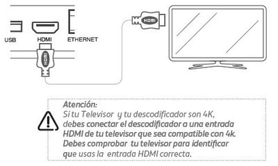 Si has recibido un cable HDMI, conecta un extremo al descodificador y el otro a una entrada
