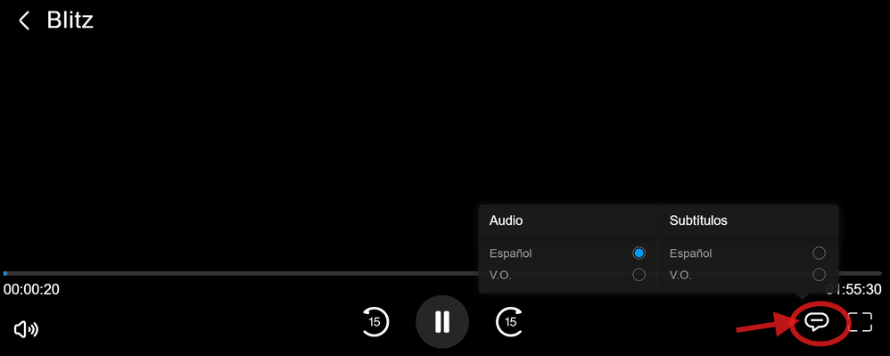 Si estas viendo un contenido bajo demanda, la opción esta disponible en la esquina superior derecha del reproductor al pulsar OK en el mando