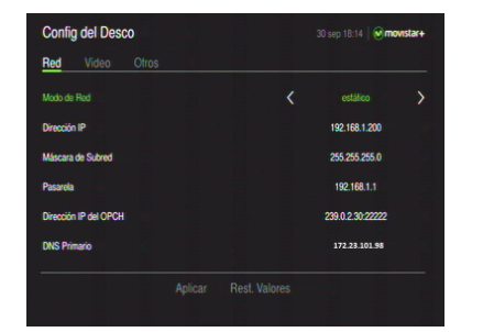 Al cargar el menú, estarás por defecto en la pestaña "Red".