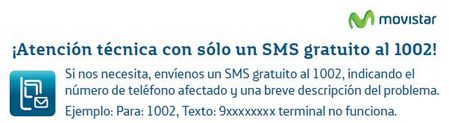 Comunicar Averías por SMS Puedes comunicar tu incidencia técnica movistar Fijo (Línea, ADSL, Imagenio) mediante el envío de un SMS gratuito desde tu móvil movistar. Envía tu mensaje al 1002 indicando el número de teléfono afectado seguido de una breve descripción del problema. Ejemplo de SMS al 1002: 9XXXXXXXX No me funciona la línea.26 milVistas2me gusta0Comentarios