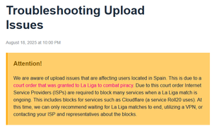 No hay fútbol. Sin embargo, se han olvidado de restablecer el servicio a miles de webs legítimas que utilizan CloudFlare. Por ejemplo, no puedo entrar a Filterblade.xyz para editar mi filtro del Path of Exile. La web del Froiz no abre. Tengo sesión de DnD en roll20 en 12 horas y no puedo cargar los mapas y tokens necesarios. Todo eso se arregla si pongo una VPN gratuita, y si, es gratis económicamente, pero ¿a qué costo la uso? ¿potencialmente vulnerando la seguridad de mis datos? Violan Net Neutrality y la Constitución Española. A este punto ya no es un tema de que me hagan un descuento, es que violan una serie de derechos de los usuarios que pagan por sus servicios. El fútbol no me interesa en lo más mínimo, pero tal vez la única manera de arreglar algo sea pirateándolo. Así, en vez de cabrearme porque pago por un servicio que no funciona, me encargo de que La Liga pierda 93475176591645091625812063478548912548 euros por segundo. Tebas se cabreará tanto que le dará un ictus, y el problema se habrá resuelto. Por motivos legales, ese último párrafo es un chiste. Animus Iocandi.82Vistas0me gusta11ComentariosBloqueo Cloudflare