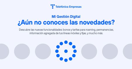 Más RecienteMás VistosMás Me GustaCómo se accede a la web Mi Gestión Digital Accede a la web Mi Gestión Digital y gestiona tus productos y servicios cómodamente El área privada de Telefónica Empresas es Mi Gestión Digital Regístrate para acceder al nuevo portal Mi Gestión Digital Gestiona tu línea móvil y consulta tu consumo desde el portal web Mi Gestión Digital Desde Mi Gestión Digital gestiona tu línea móvil de empresa Mi Gestión Digital: la web de autogestión de todas las empresas Con la web Mi Gestión Digital autogestiona tus productos y servicios contratados fácilmente Cómo registrarme en Mi Gestión Digital Regístrate en la web Mi Gestión Digital y gestiona tus productos y servicios contratados Descubre las nuevas funcionalidades de tu área privada Mi Gestión Digital Novedades en Mi Gestión Digital: bonos roaming y tarifas internacionales, y mucho más Cómo desbloquear la línea móvil de tu empresa si no recuerdas el PIN ¿Se te ha bloqueado el móvil al introducir el PIN equivocado?, te enseñamos a desbloquear la línea móvil de tu empresa Cómo abonar las facturas pendientes de pago desde Mi Gestión Digital Gestiona tus facturas pendientes de pago desde Mi Gestión Digital Consulta tus informes de servicios de datos desde Mi Gestión Digital Configura tus servicios de datos desde el portal Mi Gestión Digital Servicio Corporativo: gestiona las líneas móviles corporativas desde Mi Gestión Digital Consulta y configura las líneas móviles corporativas de tu negocio fácilmente