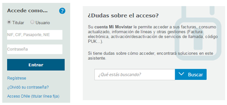 Las facturas son un documento privado y, por tanto, no están accesibles desde la zona pública de la web de Movistar. Es preciso disponer de un usuario y una contraseña para acceder al área privada “Mi movistar”: Si no dispones de credenciales para acceder, es posible obtenerlas desde esa misma pantalla, en “Regístrese”. Si dispones de ellas, hay dos tipos de acceso: como titular o como usuario. Una vez dentro, es posible consultar fácilmente tus facturas de fijo y de móvil, los consumos totales y el desglose por conceptos, mediante los enlaces habilitados a tal efecto.870Vistas0me gusta0Comentarios