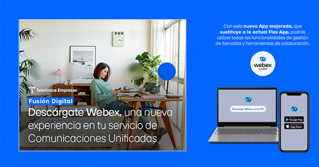 Más RecienteMás VistosMás Me GustaFusión Digital Empresas es el portal de gestión para atender a tus clientes Con el portal de gestión Fusión Digital las comunicaciones con tus clientes siempre a punto Cómo gestionar tus llamadas desde Webex en Fusión Digital Con la app Webex puedes gestionar las llamadas de tu negocio Nueva versión 43.02. de Webex en Fusión Digital y Centrex IP Actualiza a la nueva versión 43.02. de Webex y descubre las novedades que trae