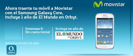 Hola a todos....:smileyvery-happy::smileywink: Aquellos a quien os gusta estar informado y leer la prensa online cada día, tenéis ahora a vuestra disposición una promoción que os puede interesar. Desde el 15 de noviembre (y hasta el 31 de diciembre), cualquier alta, portabilidad a Movistar o migración de prepago a contrato que lleve asociada la adquisición del terminal Samsung Galaxy Core llevará incluida sin coste adicional el servicio de suscripción de El Mundo en Orbyt durante 12 meses, desde el alta del servicio. Lógicamente, tambien podrán beneficarse por tanto de esta promoción aquellas personas que decidan darse de alta en Movistar Fusión o que ya lo tengan contratado pero decidan dar de alta una línea adicional con el Samsung Galaxy Core. Y también la podréis disfrutar aquellos que llevéis a cabo canjes para la adquisición del terminal. Y es válida tanto si la adquisición del móvil se realiza con financiación o sin ella. Sin promoción, el precio de este servicio asciende a 4,15 €/mes (5,02 €/mes IVA Incluido). El ahorro sobre el precio de mercado para no clientes movistar es de 119,88 €/año. Como seguramente conocéis, Orbyt es un quiosco de prensa digital de pago multi-soporte en España y permite acceder a El Mundo en cualquier momento, desde el PC, la tablet o el móvil y permite utilizarlo hasta en 5 dispositivos de forma simultánea. El consumo de datos por usarlo en movilidad se factura en la tarifa de datos que tenga el cliente o en pago por uso. El cliente dispone de toda la información y soporte (a través de un formulario online) en la página de orbyt.movistar.es La promoción está a disposición tanto de usuarios o clientes residenciales como autónomos. Para dar máxima transparencia a la contratación de este servicio, Movistar, una vez el cliente ha finalizado el proceso de compra, le envía un SMS de confirmación de alta y la dirección "orbyt.movistar.es" donde realizar su registro en la aplicación para empezar a disfrutar de su servicio El mundo en Orbyt.. Una mes antes del fin de la promoción el cliente recibirá un sms/mms si quiere continuar con el servicio abonando la cuta mensual o darlo de baja. Recuerda, que la promoción está vigente hasta el 31 de diciembre. !!!!!!Un saludo¡¡¡¡¡¡¡11 milVistas0me gusta0ComentariosDudas Frecuentes Nuevas Tarifas Movistar Móvil