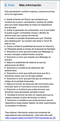 Buenas a tod@s Si hace casi un mes os comunicábamos la disponibilidad de los ajustes para activar el 4G en el iPhone, ahora os queríamos contar que Apple nos ha informado de que ya está disponible la nueva versión de IOS 7.0.3 para los siguientes dispositivos: iPhone 4, 4S, 5, 5c, 5s iPad: 2, 3ª generación, 4ª generación y Mini Esta actualización de IOS junto con los nuevos ajustes de operador (movistar 15.6) dota a los iPad de 4ª generación y Mini de conectividad 4G. La forma de actualizar el terminal es la misma que en otras ocasiones: - Notificación como mensaje emergente (pop-up) a la pantalla del dispositivo - Bajo demanda del usuario ( Menu - Ajustes - General - Actualización software ) - Conectándo el dispositivo al PC dotado de iTunes (aparecerá la actualización disponible en la pantalla del PC) Nota: durante las primeras semanas la actualización únicamente se podrá realizar desde el propio dispositivo si éste se encuenta conectado a una red Wi-fi. A continuación os incluimos un pantallazo del mensaje que Apple envía a los usuarios sobre las mejoras que suponen la nueva versión de IOS 7.0.3: Si tenéis cualquier duda, por favor ponedla a continuación. Un saludo.64 milVistas3me gusta9Comentarios