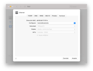 Buenos dias. Desde hace unos días, vengo teniendo un pequeño problema con la velocidad simétrica en mi Mac. Resulta que quiero configurarlo manualmente para que el Mac le lleguen el Giga, que nunca me llegó, que siempre era 940/940, pero desde hace un par de días no me llega esa velocidad y tampoco me deja configurarlo a 1000BaseT. Alguna solución al respecto. Sé a hecho todo tipo de comprobaciones, tanto cable que es Cat5e v( si antes lo tenia y ahora por que no) eh llegado a reinstalar hasta Big Sur desde 0 y rotor no eh tocado nada. Qué opciones ahi para eso..? Dejo captura pantalla para ver qué podemos hacer, por que sé que más de uno tenida el mismo problema. Para más datos lo eh podido probar tanto con un ASKEY como un Mitrastar y teniendo el mismo resultado. Creo que el problema reside en el Mac y poniendo algún comando a algo en Terminal, “creo” podría solucionar el tema. Gracias Y saludos1,1 milVistas0me gusta6ComentariosMovistar+ en macOS High Sierra y Safari 10.0.3
