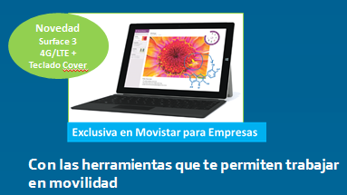 ¿Portátil o Tableta? Los dos!!!! En nuestro día a día muchos de nosotros estamos acostumbrados a trabajar con varios dispositivos, un portátil, un iPad, un móvil, y parece que ninguno de los dispositivos conseguía ser un sustituto del Pc cuando trabajas fuera de la oficina. Sin embargo, con el nuevo dispositivo de Microsoft, el sustituto del Pc es una realidad para trabajar en movilidad y ser más productivo. “Surface 3 4G/LTE” de Microsoft combina las funcionalidades de un PC y las de una tableta: funciona con sistema operativo Windows 10, proporcionando una experiencia completa con respecto a la de un PC tradicional, gracias a su procesador Intel, marca líder en este sector, y a su memoria RAM de 4GB, manteniendo el aspecto y ligereza de una tablet. El dispositivo está disponible en un pack único para empresas: “Surface 3 4G/LTE de 64 GB + Teclado Cover”, un accesorio de utilidad “funda-teclado” con las mismas dimensiones de tecla que un teclado normal y un grosor similar al de 10 folios, que facilita el transporte del dispositivo. Surface 3 4G/LTE, un dispositivo diferencial, para construir un puesto de trabajo en movilidad completo, con independencia del tamaño de la empresa y con la ayuda de los servicios de Movistar: - Las herramientas ofimáticas en la nube: los usuarios podrán acceder a todos los archivos desde cualquier dispositivo con Office 365 de Movistar. - Los dispositivos móviles de tu empresa gestionados: podrán configurarlos, movilizar aplicaciones, acceder a sus documentos corporativos. La información será confidencial en todo momento. - Y no debemos olvidarnos de la seguridad de estos dispositivos con el “Antivirus Multidispositivo”, la solución más completa y fácil de utilizar para proteger los dispositivos. Un conjunto de herramientas que garantizan productividad, potencia, movilidad y seguridad, y adaptados al perfil de cada empresa.2 milVistas0me gusta0ComentariosSIM no funciona en Tablets