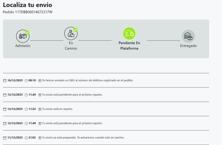 Hola, Llevo esperando recibir un paquete desde el día 14/11: 13/11, 13:29 recibo SMS de confirmación de fecha de entrega 14/11, donde selecciono entrega en horario de mañana 13/11, 21:55 recibo SMS "tu dispositivo ya está preparado" 14/11, 9:54 "tu pedido llega hoy" 14/11, 10:11, SMS con indicación de código de entrega segura Durante la mañana del día 14/11 no se entrega el dispositivo y en el teléfono de atención al cliente de ZELERIS únicamente se informa de que el pedido está en reparto. Por supuesto llamo a Movistar y no tienen más información al respecto. A las 21:30 del 14/11 se genera una incidencia en la web de seguimiento indicando que la dirección no es completa, no siendo eso cierto ya que la dirección es perfectamente correcta (ZELERIS ya ha entregado otros dispositivos en otras ocasiones sin problemas). Aun así, confirmo y se reprograma la entrega para el 19/11. Para mi sorpresa, días después en la página de seguimiento aparece la incidencia a las 12:00 del 14/11 que no estaba antes, lo cual únicamente indica que se falsea la información reportada. Hoy 19/11 debería haberse realizado el segundo intento de entrega, ya con la dirección confirmada. Los mensajes SMS que recibo: 19/11, 11:28, tu pedido se entrega hoy y se comunica código de entrega segura Desde las 17:00 en las llamadas a Zeleris solo indican que el dispositivo está en reparto. Tras llamada a Movistar indican que ven una incidencia en la tramitación del pedido, en la web de seguimiento y teléfono se indica que el pedido está en reparto. Es VERGONZOSO, una semana después sigo sin dispositivo (ya son 2 semanas contando la espera para la contratación), habiendo tenido que mover mi agenda para estar localizable en mi domicilio esperando una entrega que NO SE PRODUCE y que NO SE COMUNICA. Digo yo que no solo trabajan ellos, quienes esperamos la entrega también lo hacemos y el desorden que generais es INADMISIBLE. Si esto no se resuelve mañana, esta misma semana tramitaré mi baja como cliente movistar. Con el coste que supone de manera mensual de mi contrato espero otra gestión muy diferente de entregas, incidencias y comunicaciones. Existen compañías que ofrecen los mismos servicios por cuotas mensuales notablemente inferiores. Ya nada justifica la permanencia en Movistar.171Vistas0me gusta4ComentariosEntrega fallida Zeleries es un desproposito